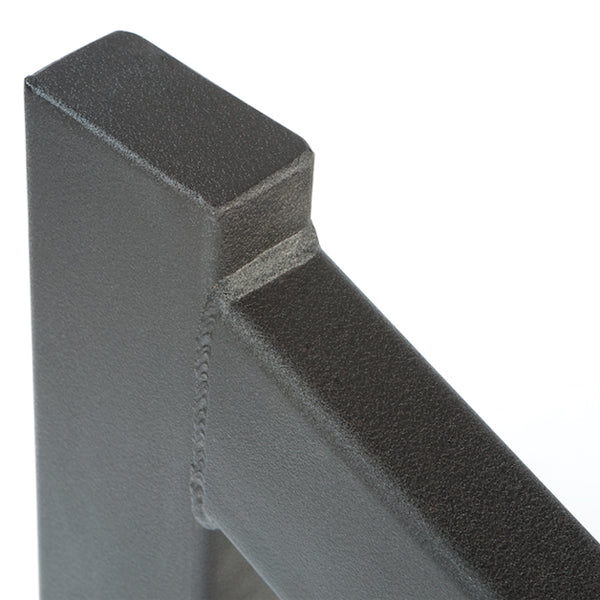 - + Finish: Matte black powder coat.