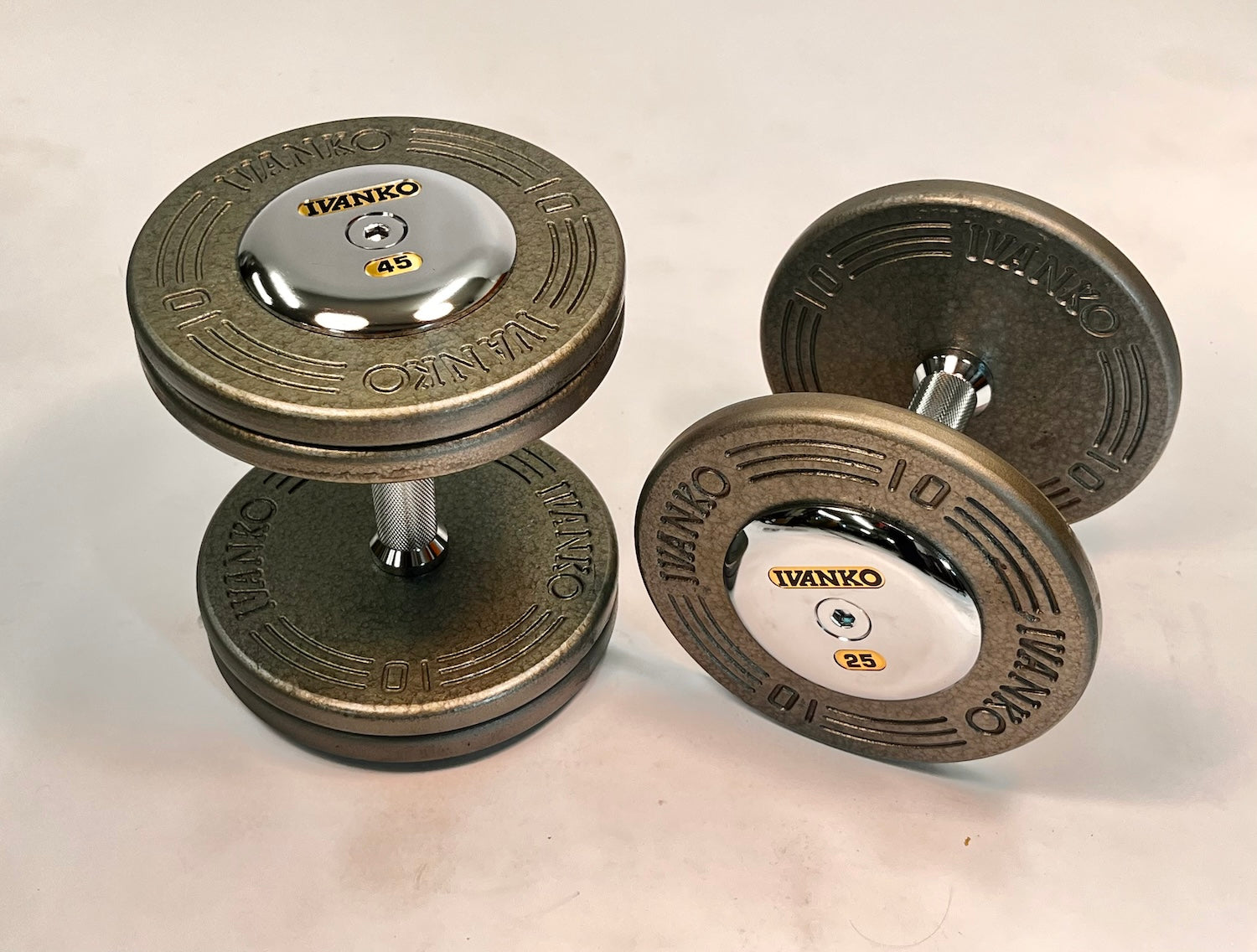 All dumbbells feature EPC chrome end plates and hand polished chrome bolt heads.