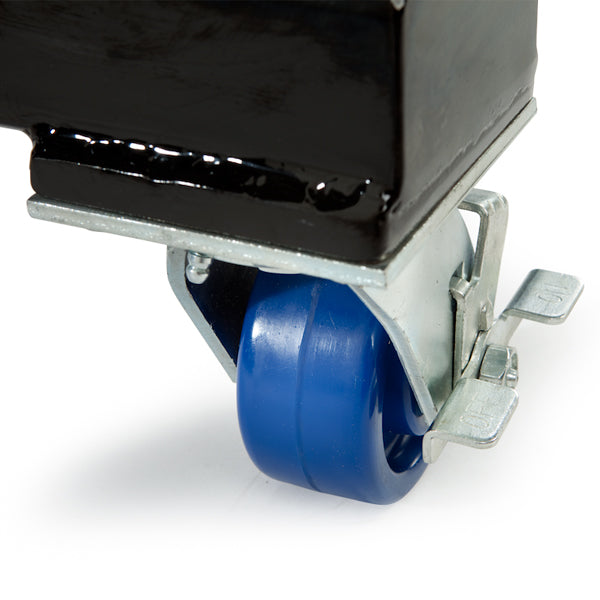 - + Zinc plated casters with zerk fittings in swivel and axle.
